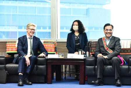 夷將Icyang主委今日接見新任 澳洲駐台辦事處 Australian Office in Taipei馮國斌代表,同時安排 永平工商表演藝術科的原住民學生展演阿美族迎賓舞。雙方一開始的會談,主委即盛情邀約馮代表參與今年4月在高雄市舉辦的「TULU」第3屆世界原住民族旅遊高峰會」,並鼓勵及推薦澳洲的業者及原住民族來臺共襄盛舉;馮代表回應很高興獲得主委的邀請,也允諾確保澳洲參與的代表,並盡所能給予協助。