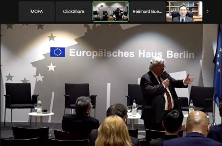 外交部政務次長李淳於本(11)月13日晚間應德國籍歐洲議會議員暨「對中國關係代表團」團長包瑞翰(Reinhard Bütikofer)邀請,於第二屆「柏林台灣研討會」以「台灣總統大選前夕:台海情勢及台歐去風險夥伴關係之未來」為題,發表視訊演說。我國駐德國代表謝志偉、德國外交部亞太事務助理次長司佩蘭(Petra Sigmund)、德國國會議員徐德分(Dr. Till Steffen)及雷西特(Ulrich Lechte)等政要,以及德國媒體與智庫人士約100人與會。