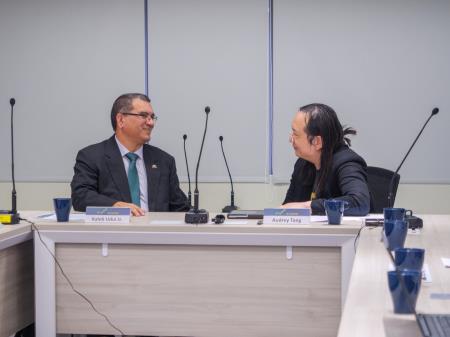 數位發展部唐鳳部長7日接見友邦帛琉財政部長烏卡雷(Kaleb Udui, Jr.)訪團,雙方交流數位政府、資安及web3等議題,就兩國未來可能的合作議題展開對話。唐部長分享我國推動數位簽章的現況,並表達樂於應烏卡雷部長邀請,申辦帛琉數位居留證(Digital Residency),期望此次會面能深化雙方在相關領域的互惠合作。