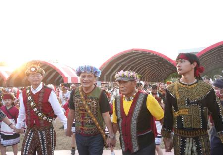 由高雄市政府原住民事務委員會主辦「2025 TAKAO豐潮原住民族聯合豐年節」,8日於高雄隆重揭幕。開幕典禮邀集中央與地方貴賓、各族群代表及社團齊聚一堂,共同見證南島文化在港都綻放的動人風采。原民會曾主委親臨現場致詞,肯定高雄市多年來深耕原住民族文化推廣的努力,並祝福活動圓滿順利,讓世界看見高雄的文化能量與族群風華。