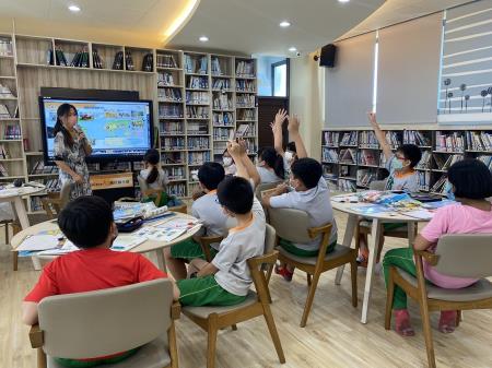 教師江映雪遠距任教嘉義縣隙頂國小,為提升授課學生的專注力,將課本內容轉化為簡報投影片,並加入課本外的圖片及影片,設計互動式小測驗,即時檢視學生學習成效,讓學生的目光不侷限於課本和電子書,能持續跟隨老師的教學活動。江老師至該校實體交流時,安排課外故事或應景節日相關教學內容,並搭配實物道具、動作手勢、板書及繪畫等,增加學生學習英語的興趣。