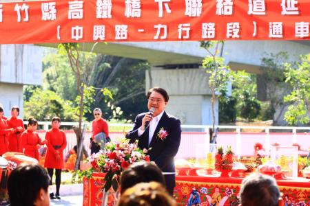 內政部長林右昌2日出席「新竹縣高鐵橋下聯絡道延伸至竹科工程」通車典禮祈福活動。林右昌表示,本案工程分3期推動,總工程經費約32.67億,中央累計補助近26億、80%,今日最後一哩路通車後,高鐵特定區往返新竹科學園區不用再繞進市區,可有效紓解市區及中山高竹北至新竹交流道區間交通壅塞情形,並可南北串連新竹生醫園區、臺灣知識經濟旗艦園區、二三重都市計畫區等,帶動區域產業發展及創造多重效益,未來在尖峰時刻整體車行時間可以縮短15至20分鐘車程,讓現行僅仰賴經國大橋通行及車流壅塞的狀況可以獲得改善及解決。在此,也謝謝新竹縣市及竹科管理局通力合作,還有在地立委、民意代表、里長及鄉親的共同協助,讓本案能夠順利完成最後一哩路。
