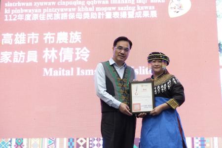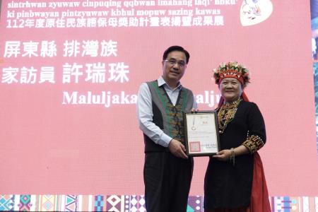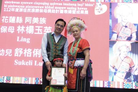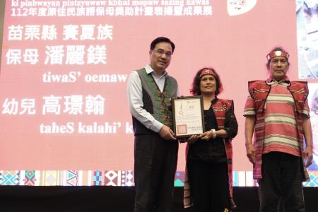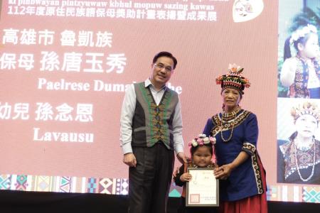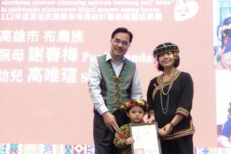 原住民族委員會16日在本會原住民族文化發展中心舉辦「112年度原住民族語保母獎助計畫-表揚暨成果展」,由原民會夷將Icyang主任委員親自主持,鼓勵及表揚獲選的11組優秀族語保母及幼兒,以及優秀5位家訪員,並擴大宣傳計畫的推動成效。