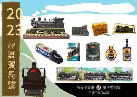 臺鐵局為此次活動盛事,精心規劃推出蒸汽機車周邊商品共襄盛舉,首推精緻手工立體紙雕卡片,每張超值價為390元,不僅考究真實的火車機構,繪製許多插畫細節,除立體紙藝的呈現,上面還有燙金裝飾並設有夾層,內有一張紙卡,正面為火車歷史介紹,背面有書寫區域,亦可作信件使用。收納卡片的典藏盒,透過封面的中央山脈為主,山脈間藏有石虎、台灣黑熊、梅花鹿、台灣藍鵲、寬尾鳳蝶等特有種動物為點睛。整件作品在製作上不使用任何黏貼,在紙藝技術中也是高難度的設計,可以永久保存典藏!