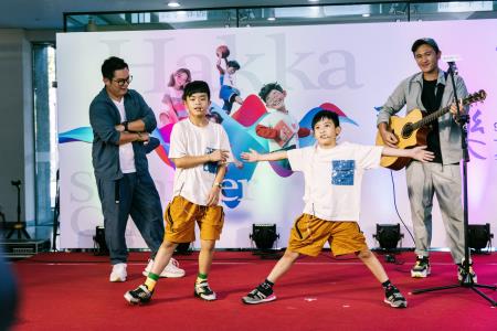 今天活動現場,特別邀請劉劭希老師帶著五位小朋友演出Kids Of Rock,展現客語音樂的搖滾;同時也請iColor樂團帶領兩位小朋友精采演唱《搞》,並且帶來一段活潑的配音演出,為即將在暑期開展的夏令營增加不少可看性,希望吸引更多後生青年子弟及年輕族群踴躍參與,促進客家文化的永續發展。