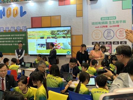 教育部於本(112)年度11月9日至12日參與台北世貿一館舉辦的資訊月「臺灣教育科技展」,以「科技教育 玩出學習力」為主軸,展現「班班有網路、生生用平板」政策推動成果。活動期間教育部精心規劃「智慧教室」、「探索樂園」、「深耕列車」、「數位解碼」及「智趣5G」五大展區,邀請各級學校師生及家長們前來參與多元豐富的闖關活動及體驗數位學習課程。