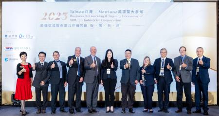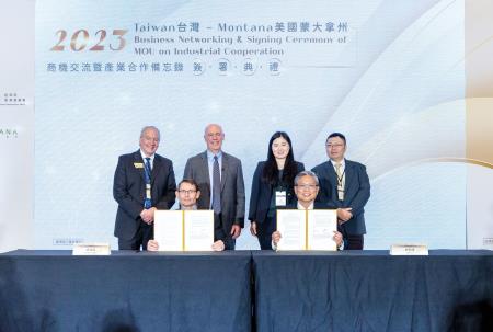 美國蒙大拿州州長詹福特(Governor Greg Gianforte)率領產業訪問團蒞臨台灣,於10月30日與經濟部產業發展署陳佩利副署長、鄒宗勳副組長、蒙大拿商業廳長歐碩文(Scott Osterman)等人共同見證,經濟部台美產業合作推動辦公室(TUSA)與蒙大拿州光電與量子產業聯盟(MPAQ)於智慧製造及光電科技領域簽署產業合作備忘錄,由TUSA林昭憲執行長與MPAQ姚傑森(Jason Yager)總裁進行簽署,雙方將建立台灣與美國蒙大拿州產業合作平台,深化策略夥伴關係,提升產業發展競爭力,共同拓展全球市場。