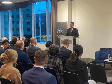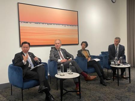 演講會後,吳部長、國會外委會梅馬侃主席及ICDS日本研究講座Dr. Elena Atanassova-Cornelis共同進行座談,針對近年台灣與理念相近國家顯著提升實質關係、維持台海現況、台灣認同及美國明年大選等議題深度交換意見,並獲得現場聽眾熱烈回響。