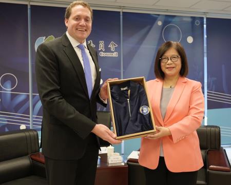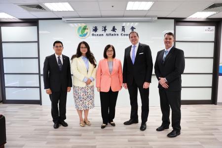 美國在台協會高雄分處處長張子霖(Neil Gibson)於今(112)年8月就任,特於24日偕同台北辦事處成海天(Chris Chase)聯絡事務組副組長暨海巡事務官赴海洋委員會拜會管碧玲主任委員。