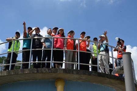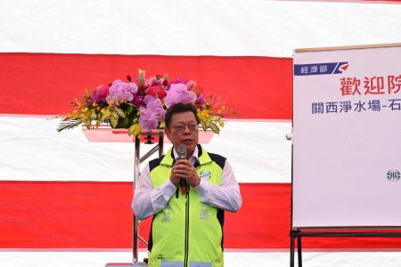 新竹縣鳳山溪六月中發生水質污染事件,台水在第一時間做出緊急處置,3日內全面恢復供水,並投入新竹縣中長期穩定供水計畫,行政院長陳建仁與經濟部長王美花11日上午在台水董事長李嘉榮陪同下視察關西淨水場-石門水庫聯通支管工程計畫,新竹縣長楊文科及各級民代亦到場關心後續改善措施。