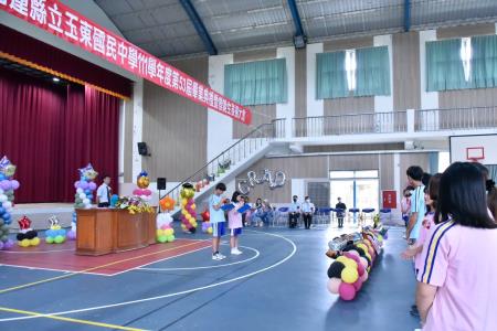 另外,我要跟各位學弟妹們分享,我以前也是玉東國中100公尺200公尺跑最快的田徑選手;而現在有「臺灣最速男」之稱的田徑運動員「楊俊瀚」也是玉東國中畢業的校友,我們以他為榮。所以,期許各位畢業生,不論你在學業或其他領域專長上,只要你願意投入心力、持之以恆,未來都能在你擅長的領域發光發熱,為族人、為國家爭光!最後祝福各位學弟學妹鵬程萬里!謝謝,Aray!