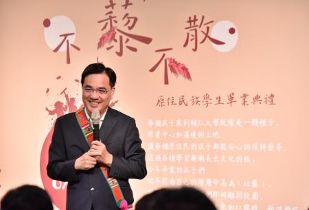 原民會夷將Icyang主委受邀出席輔仁大學原住民族學生資源中心舉辦原住民族學生畢業典禮,親自表達對畢業生的祝福,致詞重點如下: