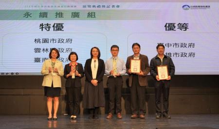 「永續推廣組」係評比縣市政府媒合促進轄內餐飲業者提供循環容器盛裝餐點服務之成效;共計3個特優及2個優等。