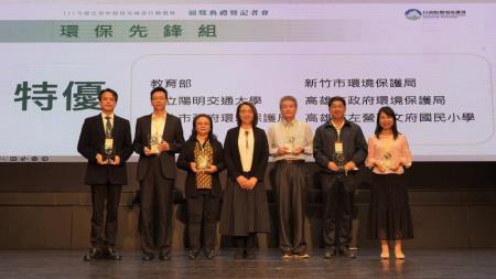 「環保先鋒組」特優獎單位教育部代表科長連杉利表示,教育部先據環保署所提供的指引盤點政策在學校落實的可行度,並積極與環保署溝通,再訂出原則,從國立學校的校園出發。在試辦過程中陸續發現問題並設法解決,包括協助統整業者名單、輔導在活動前先做詳細調查並尋找多元解方等,透過多方溝通來鼓勵學校做到。