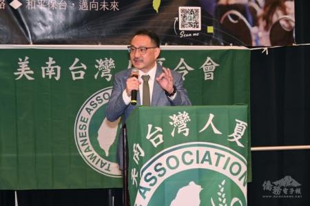 阮昭雄代表委員長徐佳青親切問候鄉親,讚揚美南夏令會從1970年開始迄今逾50年歷史,美南五州8個臺灣同鄉會輪流持續辦理,關心臺灣,聯絡鄉情,協助推動臺美關係,貢獻良多,2019至2022年雖因疫情停辦,但今年仍集各方之力恢復辦理,相當不易,對於前輩們凝聚情誼之貢獻表示欽佩。他也同時向大家推介疫後政府最新僑務政策,如臺灣華語文學習中心、海外青年英語服務營、各項返臺培訓班及座談、培育及留用僑生、i僑卡、僑務電子報、全球青商潛力之星等比賽,並鼓勵提攜培育年輕一代參與僑社事務,最後感謝鄉親在海外持續聲援臺灣參與國際組織,獲現場鄉親熱烈迴響。