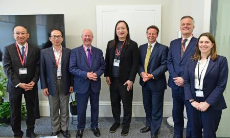 數位發展部唐鳳部長率團出訪英國,於當地時間12日拜會英國商業貿易部(Department for Business and Trade, DBT),與何德森 (Nigel Huddleston)副部長分享兩國推動數位發展的理念,盼能創造更多深入交流的機會。唐部長同日亦參加倫敦科技週(London Tech Week)全球領袖創新論壇(Global Leaders Innovation Summit),與多國貴賓分享臺灣經驗,如「數位領域就業金卡」與「臺灣雲市集」等政策。