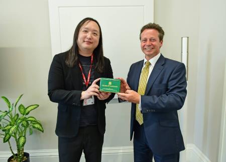唐部長說,數位部採用雲原生概念、結合零信任架構,確保良好的資安防護環境;此外,將盡速推動數位簽章互惠認證,為臺英雙方解決數位貿易的技術屏障,提供彼此更多交流機會。