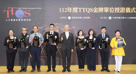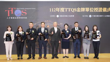 蔡孟良表示112年度共有1,964家單位參與評核,其中獲得銅牌單位約占29%、銀牌約占8%、金牌則僅占2%,期待參與評核的單位都能持續秉持著TTQS精神,追求卓越、重視流程、持續改善,來開拓更寬廣的育才之路,培養量足質精的鍍金人才以驅動產業創新發展,締造人才、產業雙贏!