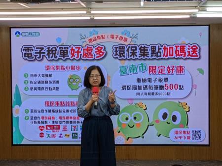 環境部鼓勵各界共同響應淨零綠生活,推動環保集點平臺,今年將首次與地方稅務機關合作,協同臺南市政府財政稅務局與環境保護局於即日起至113年11月30日推出申辦電子稅單贈環保綠點的活動,攜手民眾共譜淨零綠生活。環境部也歡迎其他縣市財政稅務單位可以仿效,利用綠點推動電子稅單。