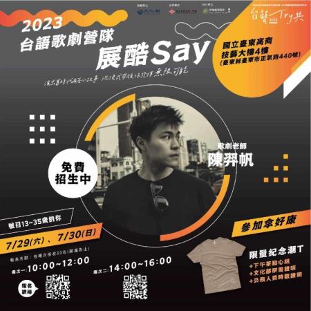 《台藝Try共! 2023臺灣台語花東推廣系列活動》即將掀起一波驚艷台灣的文化熱潮!這個夏天,7月29日(六)和7月30日(日)舉辦為期兩天的台語歌劇營隊,將以歌曲結合戲劇,讓參與者全面體驗臺灣台語的魅力,熱烈歡迎花東地區對台語文化感興趣的民眾踴躍報名參加。此外,直到年底將陸續規劃更多精彩的系列活動,歡迎有興趣的民眾關注粉絲專頁訊息。