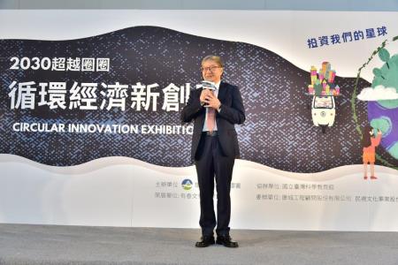環境部沈志修次長於致詞時表示,「2030超越圈圈-循環經濟新創展」今年邁入第四屆,有越來越多的資源循環企業加入,民眾參觀踴躍也顯示對資源循環的認同及支持。因應循環經濟國際趨勢及臺灣2050淨零目標,環境部今(112)年8月22日成立資源循環署,專責資源循環政策規劃與管理,以「3大循環策略」、「2大驅動支柱」為施政主軸,策略包含「綠色設計源頭管理」、「能資源循環利用」、「廢棄物量能平衡及管理」等3大策略,並串聯上、中、下游產業暢通循環網絡,同時發展創新技術與制度,作為支持驅動資源循環的支柱。本次的新創展配合綠色設計源頭管理策略,從源頭改變產品設計,生產前就要考慮到產品不使用後如何再循環,並且使用再生料製造,減少自然資源的開採,以永續循環的生產及消費模式,提高資源的使用效率,而民眾也從生活中以行動支持循環設計的產品及服務。