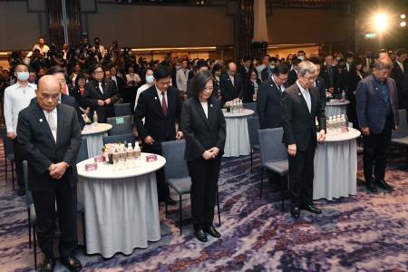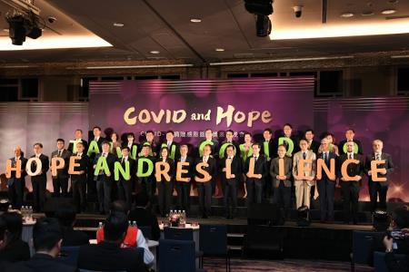 蔡英文總統與陳院長到場後,即與現場嘉賓共同為感染COVID-19逝者默哀,並觀看「罩著做,調整向前走」影片。致詞結束後,由蔡總統頒發獎座表揚一線有功團隊及各縣市政府代表,陳院長則表揚部會團體,肯定及感謝各有功團體及個人為防疫付出的貢獻。隨後,指揮中心歷任指揮官、部會代表及各國駐臺使節代表進行「希望永遠都在」排字儀式,分別手持英文字母於舞臺上排出「TAIWAN END COVID-19」,接續蔡總統、陳院長、蘇貞昌前院長、鄭文燦副院長及各國駐臺使節代表等貴賓加入,共同排出「TAIWAN COVID-19 HOPE AND RESILIENCE」。最後,眾人共同觀賞本次活動精華剪輯影片「疫後曙光,擁抱未來」,為本次活動劃下完美句點。