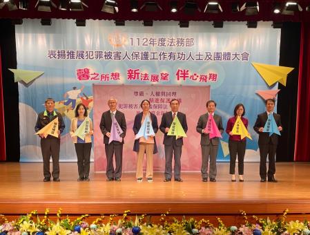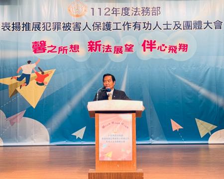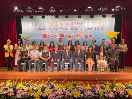 在犯罪被害事件發生後,從急性心理創傷的陪伴與處遇、接踵而來的法律協助、經濟支持、到沉澱後生心理的創傷復原,需要每位在犯罪被害人權益保障工作網絡中貢獻己力的夥伴,即時承接、同理陪伴、提供適切服務,但是犯罪的發生無分晝夜,面對犯罪被害人及家屬沉重的傷痛,對於每位保護服務工作者更是難以言喻的使命感與重擔。本部特於26日,於宜蘭金車噶瑪蘭威士忌酒廠展演廳隆重辦理「112年度表揚推展犯罪被害人保護工作有功人士及團體大會」,由行政院羅政務委員秉成及本部蔡部長清祥頒發獎座予今年評選獲獎之20名得獎人,並向長期投入犯罪被害人保護工作各位得獎人與與會貴賓致上無盡的謝意。