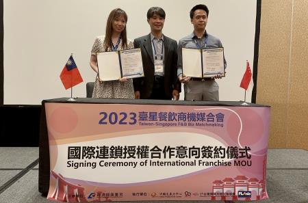 經濟部商業司表示,媒合活動邀集對臺灣餐飲業有興趣之25家新加坡企業參與媒合,現場促成9張合作意向書,包含「不貳光車輪餅」與新加坡「New Gourmet Pte Ltd」合作,預計至新加坡進行展店;「五十年杏仁茶」與新加坡GoPizza品牌加盟主「BA TOR YAO Pte Ltd」合作預計輸出杏仁茶產品;「福慧根湯」與「GJH Pte Ltd」合作預計將產品輸出;「福慧根湯」與個別投資者「Simon Wang」合作預計將產品輸出;「老媽拌麵」與「GJH Pte Ltd」合作預計將產品輸出;「茗媛茶點」與「Hawker Heroes Pte Ltd」數位平台合作預計將洽談後續合作期望能在平台上架;「茗媛茶點」與「Star Food & Beverage」合作預計將洽談產品輸出至當地;「三分春色」與「Papercut Pte Ltd」預計代理品牌進新加坡;「肉鮮生」與寮國廠商「SAVANKHAM F&B CO LTD」預計合作盼能將品牌輸出至當地,本部後續也將關心雙方實質合作進展。