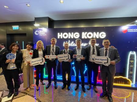 今年亞太區郵輪展主題為「共同重建郵輪市場(Rebuilding Cruising Together)」,亞洲各國在去年底陸續解封,港務公司在2023年推出國際客船優惠措施,成功使許多郵輪品牌藉此回歸臺灣市場,吸引郵輪靠泊臺灣。港務公司本次將延續郵輪市場熱度,持續推動2024年國際客輪優惠措施,也特別安排參訪香港啟德郵輪碼頭並拜會啟德碼頭總經理 Jeff Bent、名勝世界郵輪Michael Goh 總裁、Raymond Lim營運長以及永安旅行社等高階主管,依據不同郵輪業者需求及特性,精準行銷臺灣港口並制定對應策略。