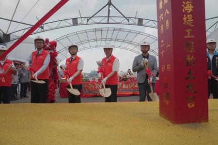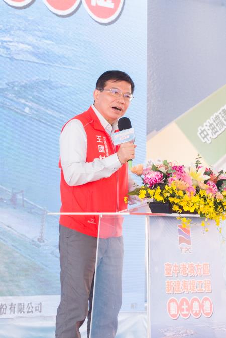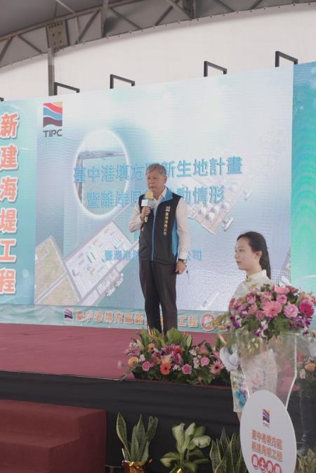 港務公司為配合臺中港未來發展及國家能源政策、因應未來風電等相關港埠產業發展,今(6)日於臺中港107號碼頭後線舉辦「臺中港填方區新建海堤工程」開工動土典禮,由行政院陳建仁院長主持,率行政院李孟諺秘書長、林子倫發言人、交通部王國材部長及各機關代表出席,並邀請立法院蔡其昌副院長、楊瓊瓔立法委員及臺中市政府交通局葉昭甫局長蒞臨,共同為該工程開工動土儀式祈福,典禮順利圓滿成功。