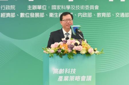 行政院副院長鄭文燦6日出席「高齡科技產業策略會議」時表示,臺灣高齡化進展非常快速,推估臺灣高齡人口於2026年將達20.8%、約500萬人,因此行政院依據「高齡社會白皮書」,推動「因應超高齡社會對策方案」,希望達成「自主、自立、共融、永續」四大發展願景,而這些目標皆需導入新科技應用,讓高齡照顧更加全面及人性化,至盼透過今日會議能夠找出高齡科技的創新方向,完善照顧高齡者福祉的願景。