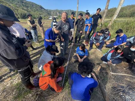 參與計畫的花蓮縣豐濱國中,為使學生了解環境永續的重要,於「阿美族傳統與土地的關係與管理方式」課程,結合視覺藝術、數學、生活科技、自然、語文、社會等不同領域發展課程。上學期課程先在森林中探索人與環境的關係,並學習森林的經營規劃策略;下學期學習部落傳統建築知識並製作阿美族「八角風箏」,進一步理解族人文化對環境永續的意義,並珍視原住民族土地與生態智慧。