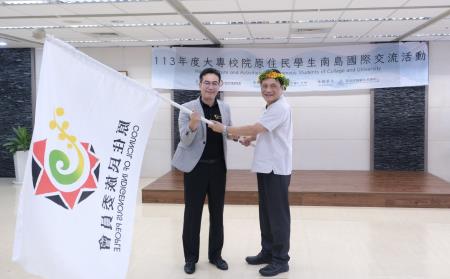 原民會24日舉辦「113年度大專校院原住民學生南島國際交流活動」授旗典禮,主任委員曾智勇Ljaucu·Zingrur親自授旗,鼓勵原住民學生前往夏威夷進行交流、發揮所長,於交流過程中宣揚原住民族文化,並促進國際原住民族交流。