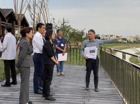 為解決石牛溪水患問題及提供周遭民眾安全居住環境,並營造親水、休憩空間,水利署第五河川分署辦理石牛溪整治工程預計提前於今(112)年底竣工。蔡總統英文11月14日蒞臨視察,由水利署賴建信署長報告工程內容與特色。