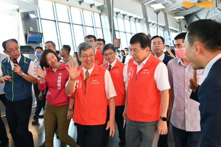 陳院長提到,除了航廈改善外,交通部也持續推動各項機場相關建設,包括機場聯絡滑行道的工程去年已開工,未來也將朝建設第三航廈的方向努力;另針對鄰近交通路網建設方面,包括去年核定的國1后里大雅路段拓寬(94億元)、今年初通車的國4豐原潭子段(305億元),以及明(2024)年預計通車的國1銜接台74線(62億元)等工程皆逐步到位,不但使臺中機場、中部科學園區的聯外交通更加順暢,也讓大臺中交通路網更健全。最後,院長再度感謝交通部、民航局及所有工程團隊同仁,並向大家說聲:「有你們真好!讓大臺中有更好的建設,也為全臺灣帶來更好的交通運輸。」