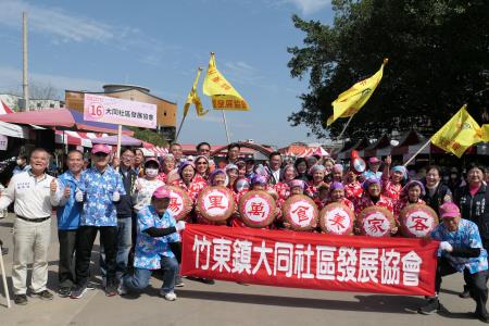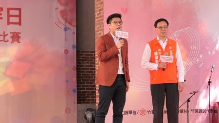 今活動一開始由靚靚竹東踩街活動揭開序幕,並邀請深井新興軒北管八音團帶來精彩表演,活動另外特別準備了1,000份獻福甜粄,讓現場民眾共同品嘗這份溫暖與甜蜜。山歌比賽啟動儀式則由周副主委與竹東鎮鎮長郭遠彰、新竹縣政府秘書長李安妤、竹東鎮民代表會、竹東鎮各里長等,一同將標有「小調」、「平板」、「山歌子」等手舉牌投入山歌列車中,象徵活動比賽正式開始。