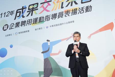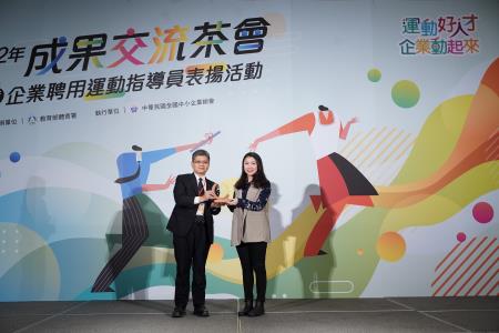 教育部體育署14日舉辦112年度推動企業聘用運動指導員暨國民體適能專業人才提升計畫成果交流茶會,房瑞文副署長頒發感謝獎座,以表揚聘用運動指導員的企業。活動現場除展出本計畫歷年執行成效與企業辦理職工運動成果外,更邀請企業代表分享辦理職工運動為公司帶來的助力與改變,促進各產業間的交流學習,引領及促進職場運動氣息的風潮。