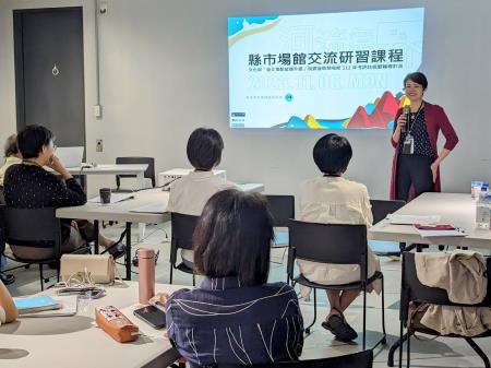 為促進國內各縣市美術館及展覽空間的聯繫與合作,文化部每年規劃至各地場館辦理交流與研習課程,至今已造訪嘉義市立美術館、桃園橫山書法藝術館、澎湖洪根深美術館等地。本年度前往新北市美術館,邀請海馬迴藝工隊黃婷玉、臺灣環境雕塑協會張子隆教授、東臺灣研究會文化藝術基金會執行長林慧珍、望見書間創辦人林周熙等,就「藝術內容的在地扎根」、「藝術生產的在地全球化」、「美術史的多元參照系譜」及「美術館潛在觀眾的多元群落」等主題進行分享,並扣合各個獲補助縣市場館的計畫執行內容及成果,引導參與學員積極思考。