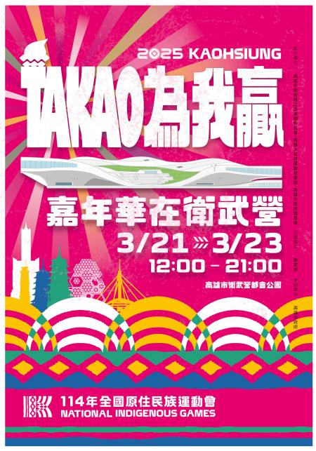 📢高雄市政府辦理「114年全國原住民族運動會嘉年華─TAKAO為我贏‧嘉年華在衛武營」活動文宣,請協助公告宣傳並鼓勵踴躍參與