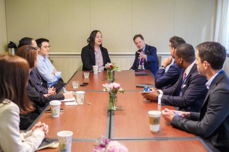 唐部長並前往拜會美國在台協會(AIT)華府總部,會晤AIT主席羅森柏格(Laura Rosenberger),就臺美雙方所重視的資安聯防、新興科技與數位民主等議題交換意見。