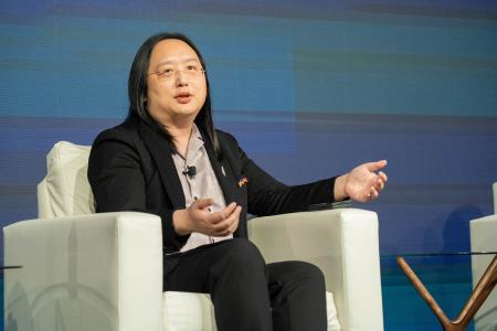 全球新興科技峰會是美國「特別競爭研究計畫」(Special Competitive Studies Project, SCSP)2021年起舉辦的年度盛會,邀請政府、企業及學術界重要意見領袖,就AI等新興科技可能對民主陣營造成的衝擊與前景等議題進行深度討論。今年峰會邀請的貴賓包含美國國務卿布林肯(Antony Blinken)、白宮國家安全顧問蘇利文(Jake Sullivan)、日本數位大臣河野太郎、OpenAI公共關係事務副總裁馬卡努(Anna Makanju)等人,其中「與臺灣對話」場次邀請唐部長進行爐邊談話,探討臺灣利用科技促進民主與強化數位韌性的努力。