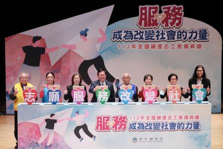 衛生福利部於本(112)年11月30日在國父紀念館-大會堂隆重舉辦「全國績優志工表揚典禮」,此次活動旨在表揚在衛生福利、文化教育等多個領域中做出卓越貢獻的志工們。而行政院鄭文燦副院長也親臨現場頒發獎項,肯定志工伙伴的傑出表現。今(112)年表揚25支「績優志工團隊」,同時也表揚服務超過8,000小時的472位績優金牌獎志工,衷心感謝志工們的付出與努力,讓社會公益事業的發展更加完善。
