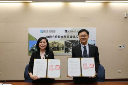 為共享臺灣鐵道研究資源,促進鐵道相關文獻史料的保存、研究與應用推廣,國家鐵道博物館籌備處(以下簡稱鐵博籌備處)與國立臺灣圖書館(以下簡稱國臺圖)雙方於24日,由國臺圖館長曹翠英及鐵博籌備處主任鄭銘彰於國臺圖簽署合作備忘錄,期待藉由雙方專業領域與資源互惠、共享的理念,加強未來在鐵道文化相關學術研究、展覽與加值應用的合作基礎。