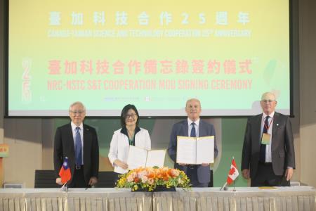 加拿大國家研究院(National Research Council Canada, NRC)與國家科學及技術委員會今(25)日共同慶祝臺加科技合作25週年,並續簽雙邊科技合作備忘錄及合辦科技主題研討會。訪團成員包括加拿大國家研究院研究人員、大學教授及研究機構代表等逾40人。