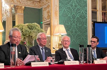 典禮由Fischer院長致詞介紹臺法科技獎設立緣由,並表示這場頒獎典禮是臺灣與法國科技交流的一個重要平台,也是對臺法科技界傑出成就的最高讚譽,相信透過這樣的合作,雙方將共同推動科技的進步,激發更多的創新力量。吳主委致詞表示,臺灣和法國都將學術研究自由視為核心價值,基於共同理念,雙方持續數十年的科研合作。奠基於雙方合作所取得之豐碩成果,臺灣堅信與法國的科技夥伴關係將進入全面發展的新階段,相信雙方將能夠在民主及自由的價值下,在重點領域的發展上共同前進。最後則由吳大使及Paris主任分別代表我國及法國,表達對臺法科研合作的支持肯定,並期許未來兩國在科技外交上能有更進一步的發展。本屆頒獎典禮場面隆重而盛大,邀請法國眾多科研代表參與,如自然科學院國際事務副院長Francis-André Wollman、終身秘書Etienne Ghys、前任科學院院長Patrick Flandrin院士、本年科技獎三位評審委員暨院士,數名科技獎歷屆得獎人,以及法國高等教育暨研究部、法國外交部、法國國家科學研究院、法國國家健康與醫學研究院、法國國家資訊暨自動化研究院等皆特地派代表蒞臨支持。