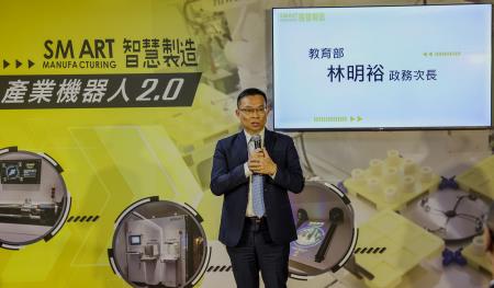教育部林明裕次長致詞表示,上銀科技以製造機器手臂聞名於世,且著力於社會企業責任,重視社會參與,對於產學界實用的展示與人才培育的支持不落人後。科工館與上銀科技合作建置「愛的萬物論-探索物聯網」與「智動咖啡館─機器手臂煮咖啡」特展,以及服務迄今滿5年的「SMART智慧製造專區-產業機器人」展示,透過建置優質科普的智慧機械教育場域,以有趣的方式,將機器手臂結合互動裝置、擴增實境、虛擬實境等技術,激發下個世代的想法,展開新一代的產業面貌。