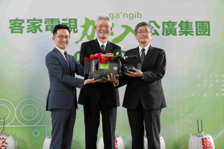 為祝福客家電視正式法制化、加入公廣集團,客家委員會6日特別舉辦捐贈儀式,由主任委員楊長鎮將象徵客家電視的攝影機,交接致贈給文化部及公視基金會,盼客家電視未來在公廣集團體系之下,持續發揚客家語言文化至全世界。