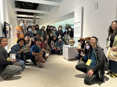 10月21日下午則辦理「走讀半日學‧Muveneng姆芙嫩知本溼地前世今生」,第一階段在史前館更新過的南島廳,由族人以其主體性角度豐富展示詮釋並參與在展示效應的擴散,講述展廳當中與該部落有關的歷史。卡大地布部落女青年Lena’an Mavaliw盧詠心在入口處動畫《世界開始的地方》,娓娓道來當中卑南族石生系統的創世神話版本。Ha’hem Darulivak周紋先則在一只中國明朝時期的酒罈前方,講述Pakaruku家族與荷蘭人首次相遇於知本溼地一帶所獲贈的這只酒罈,說明了知本溼地是部落族人的傳統領域。由於連她們也是第一次看到此一由部落借展給史前館的物證,感到非常興奮,也感受到展品與藏品強化口述歷史的震撼。