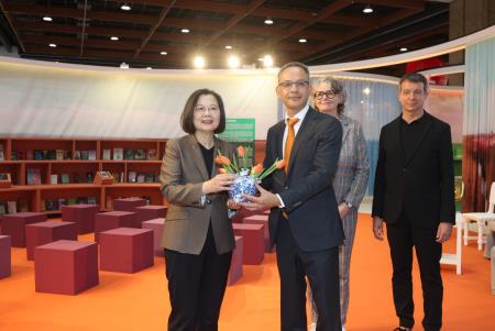 荷蘭教育、文化暨科學部文化與媒體司副司長馬泰森致詞時表示,荷蘭館特別由MVRDV、荷蘭駐台北辦事處及台北國際書展共同打造,將帶領讀者踏上一段穿越時空的旅程,著眼於過去、現在和未來。荷蘭在台辦事處代表譚敬南指出,今年是荷蘭與臺灣歷史互動400週年,因此今年將有許多的文化及經濟活動,「台北國際書展即是第一站」,荷蘭主題館將帶給大家荷蘭的多樣性、包容性、後殖民主義、荷蘭設計、可存續發展、兒童文學,以及臺荷間共同的歷史等。