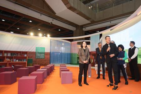 蔡總統致詞中也細數文化部近年出版產業重要政策,包含為因應閱讀方式改變,促進出版業數位轉型,去年推出擴大電子書計次借閱服務,在中央及地方政府合作下,每一次的借閱都能夠回饋給出版社跟創作者,也促成使用人次成長2倍;透過優化圖書館圖書採購,支持實體書產業發展;黑潮計畫讓臺灣文化持續走向世界;以及今年擴大到16-22歲適用的文化成年禮金,也在書展享購書點書加碼的回饋。